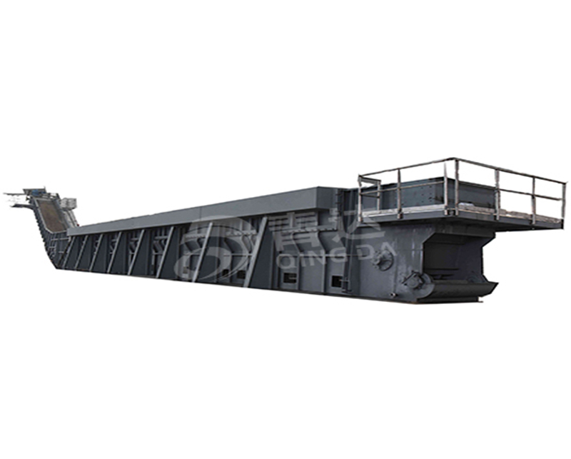 炉渣落入捞渣机上部水槽中,经水冷却后由连续运行的链条、刮板将锅炉底渣输送到下一级的储存或输送设备。青达刮板捞渣机系列产品,覆盖25~1000MW机组,出力在0.5~100t/h。