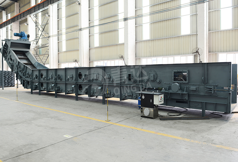 鳞斗干渣机是依靠鳞斗为承载灰渣和换热载体,套筒模锻链为传动中心,具有同步自清扫输送带,采用穿透换热、量化控风技术的新一代干式排渣机,更适合渣大量多、距离长、倾角大、一级进仓的工况。